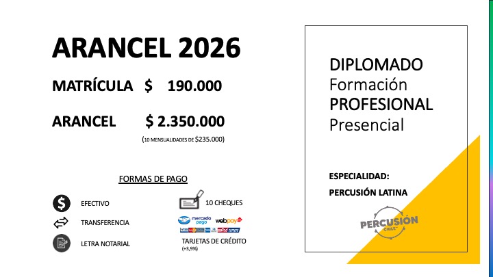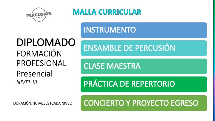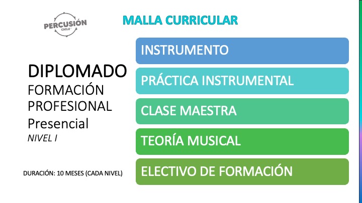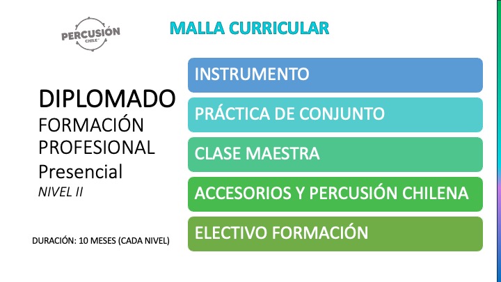 - Certificación con Trayectoria: Diploma de egreso otorgado por la institución con más de 10 años siendo pionera en la enseñanza de la percusión en Chile.